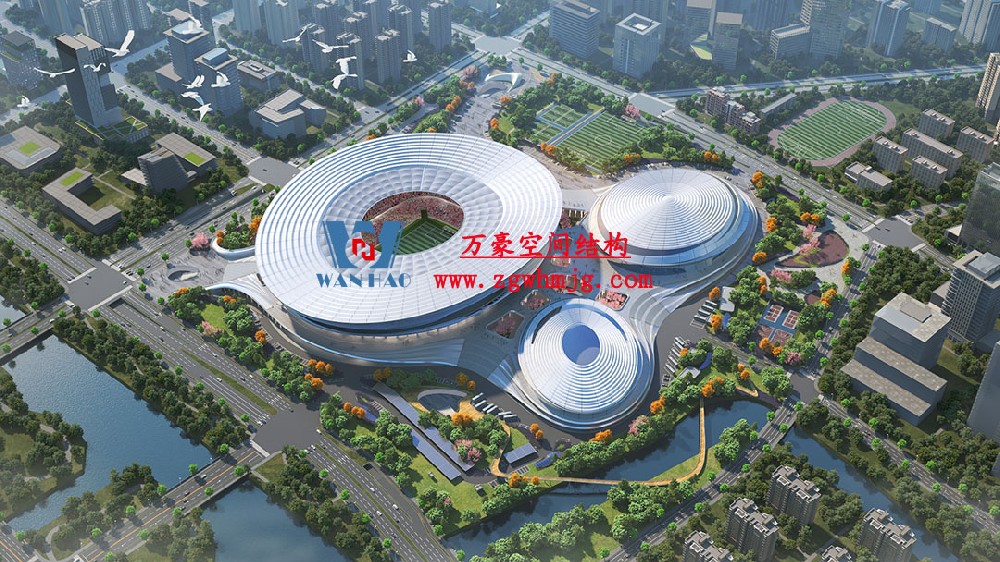 | 項目概述 - | 杭州余杭國際體育中心,位于浙江省杭州市余杭區杭州未來科技城.該項目二次鋼構用鋼量9000噸,PTFE膜展開面積40000平方米,是長三角最大覆殼式膜結構體育建筑。... |